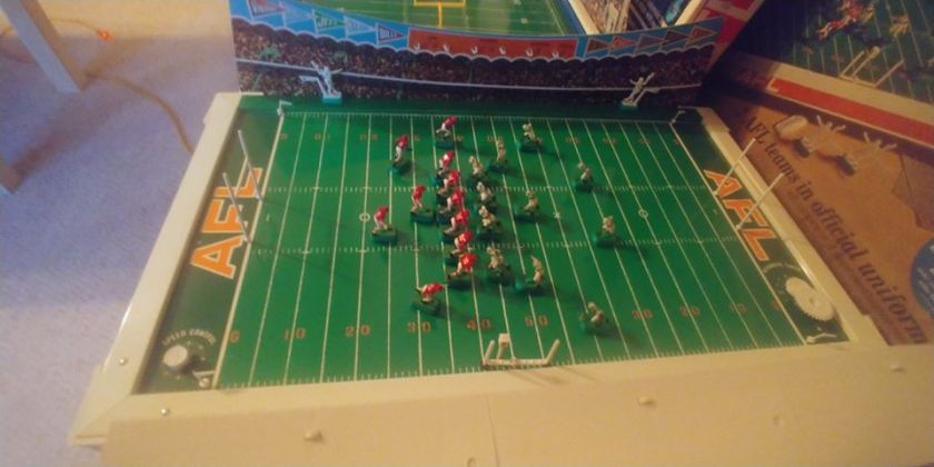 In 1968 Tudor came out with its Model 520 AFL game board with the Jets and Chiefs. This game is significant in that it was the only game set to feature 2 AFL teams with the Jets in white uniforms, the only AFL team available in white at the time and the scoreboard that could show all 10 AFL team name. This game is shows up at no. 8 of the Top 20 Countdown.