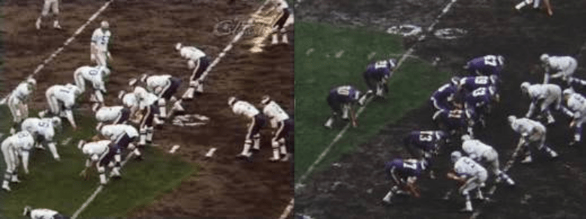 But do to the confusion for players of both teams, the Vikings changed into their purple jerseys to begin the second quarter. This also made the 1964 Vikings the first team to wear a “monochrome” dark color uniform in the history of the NFL. This would not occur again until the 2001 season when the New Orleans saints wore an all black uniform in 3 games during that season.