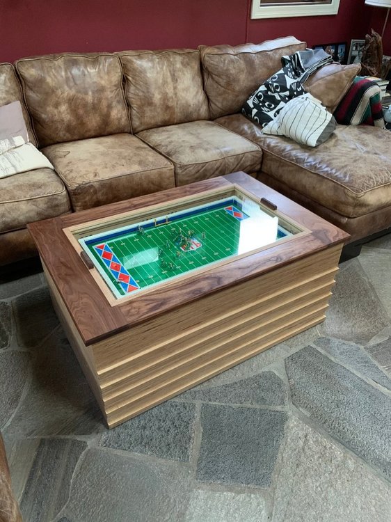 Tired of the wife complaining about the dining room table or kitchen table being used as an electric football game table? Check out this neat idea for an electric football coffee table.