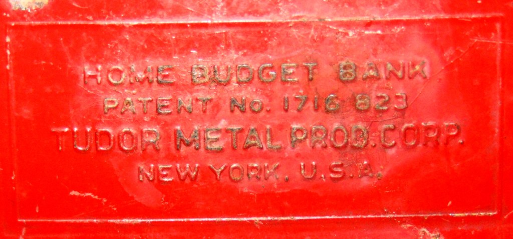 Tudor Metal Products, Corp. was originally founded and owned by Elmer Sas (the father of electric football inventor Norman Sas) who created the company in 1928. One of the products that Tudor produced and sold was this Home Budget Bank.