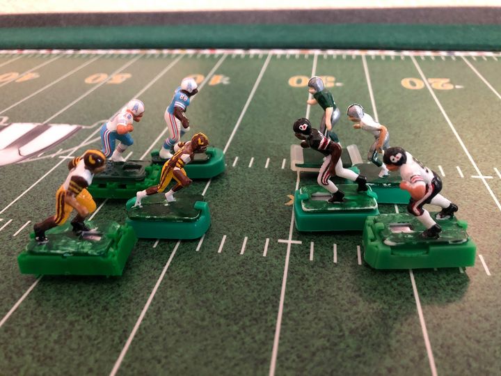 “Welcome, my father started an electric football solitaire league in the early seventies. This is an extension of that original league. My own little NFL. Each team has their own on the field (and off) identity and each has helped shape the league’s history. I started this page to share it and I have an idea. I will display my new season week to week through the Campbell Cup. Season will start in a couple weeks, and we can all see how it goes.” – Aaron Campbell, April 7, 2020