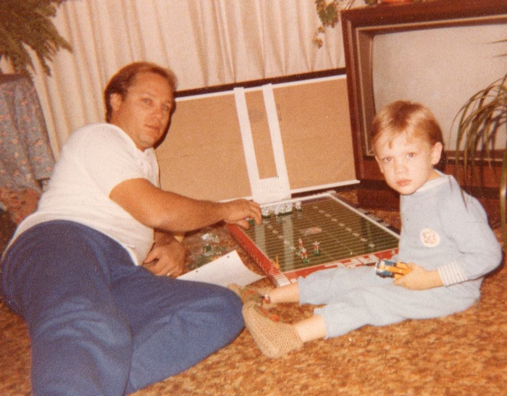 4.) Obviously, I have to thank my father. His love of this hobby lasted his entire life and only near the very end did he even learn about tweaking and putty and decaling and such. He thought he was this lone guy still hanging on to what he thought was a pretty cool board game from his childhood,… he customized goal posts, kickers, found non tweak ways to correct bases (didn’t work as well but better than nothing), customized teams and he built the first iteration of this league back in the early 1970s. Below is a picture of us playing at my Grandparents house sometime in the early 1980s (Christmas of 82 is I had to guess). Whenever I play I feel my father, Joe. Thanks dad for being a wonderful man and for sharing the love of this wonderful hobby,… and with that, it’s on to the 37th edition of the Joseph S Campbell Memorial Cup… LET’S GO! – August 29, 2020