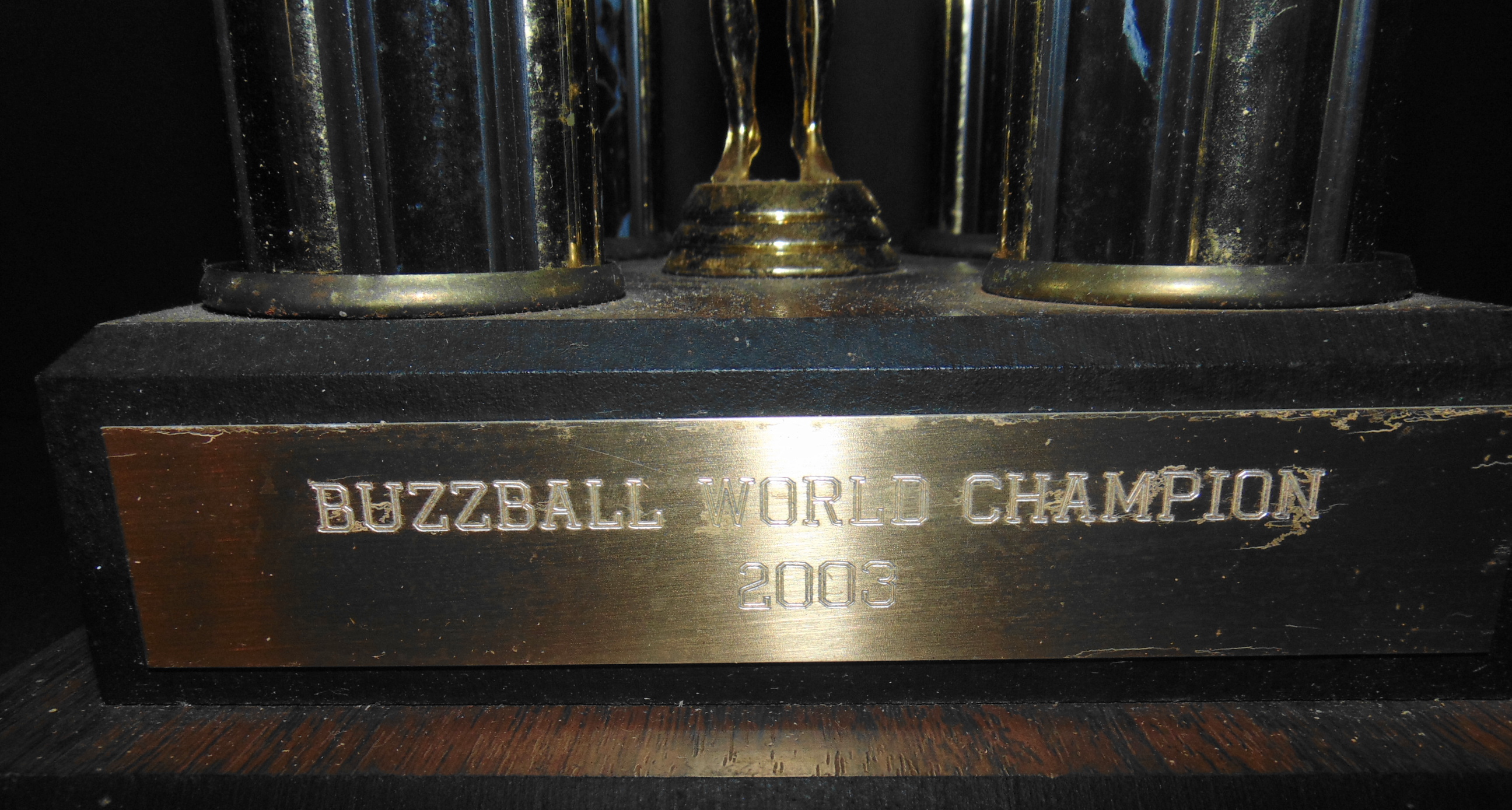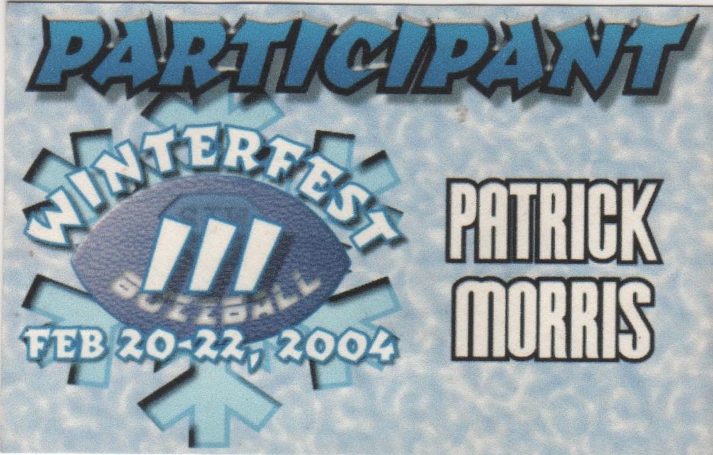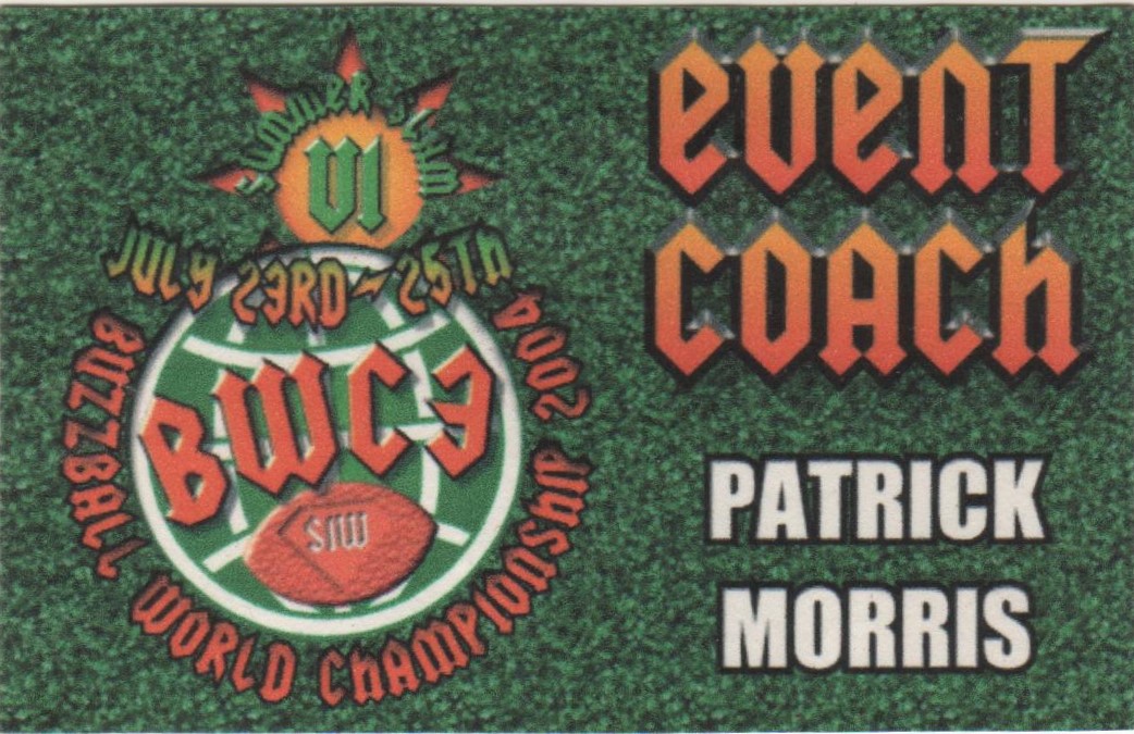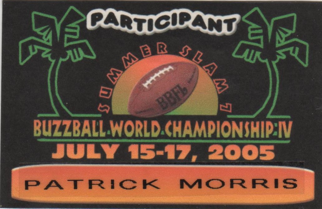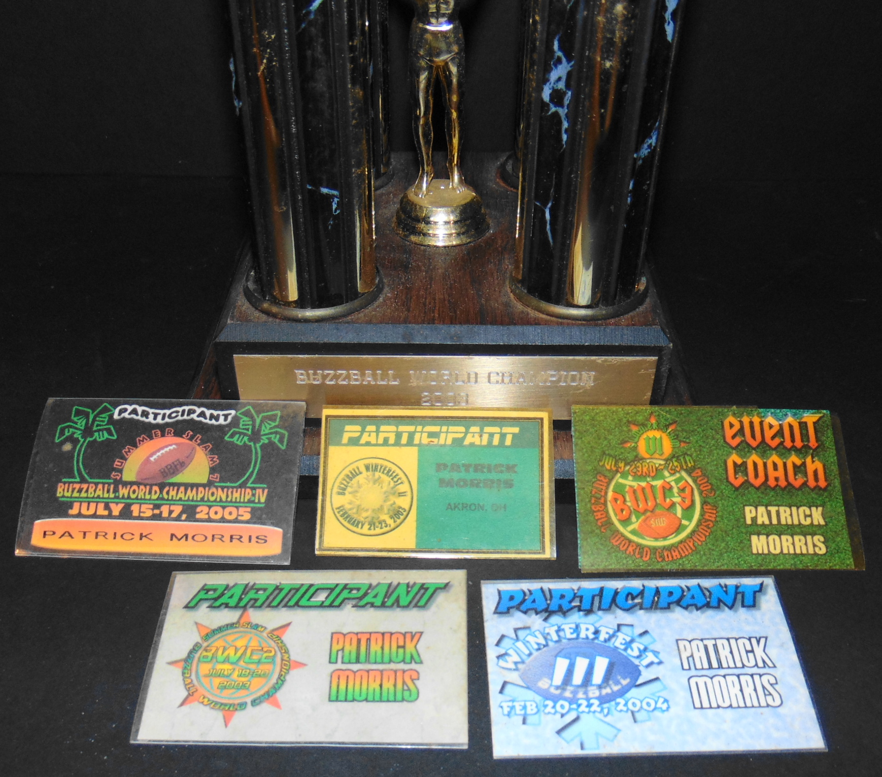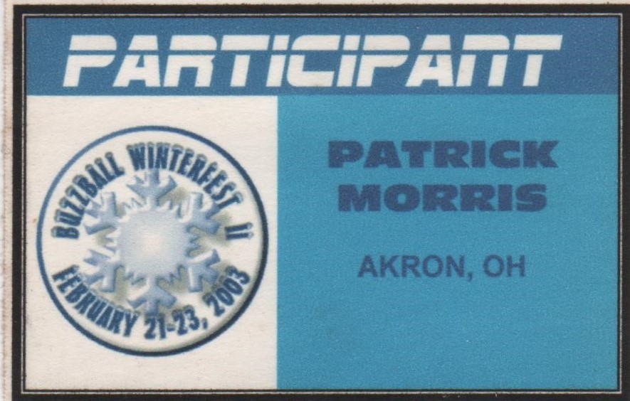 Recently Patrick Morris posted pics of some of his name tags that he had saved from participating in the Winterfest Tournaments and Buzzball World Championships hosted by George Diamand and held in Harrisburg, PA during the early 2000’s. I asked Patrick if he would consider donating these to the musem. He agreed and also asked if I would like to have his trophy from winning the 2003 Buzzball World Championship. “Absouletly!!” This week I received these “artifacts” to add to the collections of the museum. Thanks so much to Patrick for the very generous donation. It is very much appreciated.