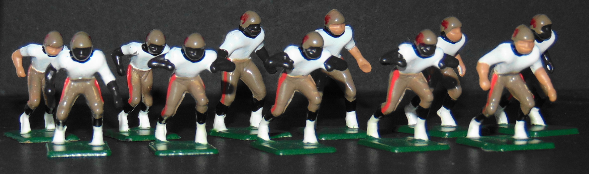 The National ELECTRIC FOOTBALL Game Museum would like to acknowledge Ryan Gregerson for this generous donation of teams and figures to the Museum. 12 pre-painted Tudor regular size figures, 2 sets each of Haiti Repro Red (HT-11-R), Haiti Repro White (HT-11-W) and 1 set of “Mean 13” (HT-13-W) figures. 17 sets of teams all together. These teams will be used to demonstrate the game to kids and as giveaway teams to kids and youth leagues.