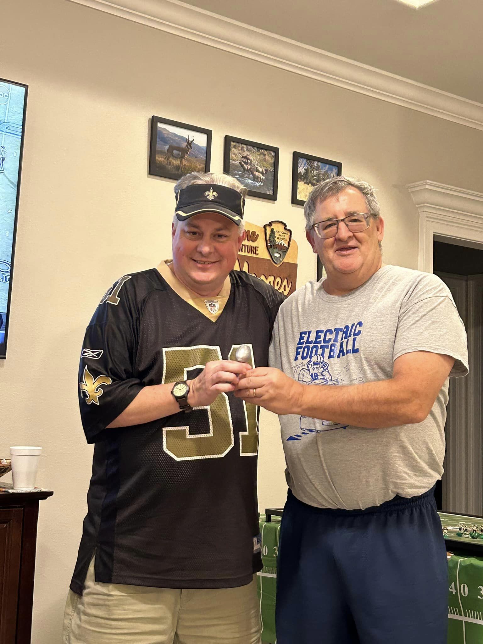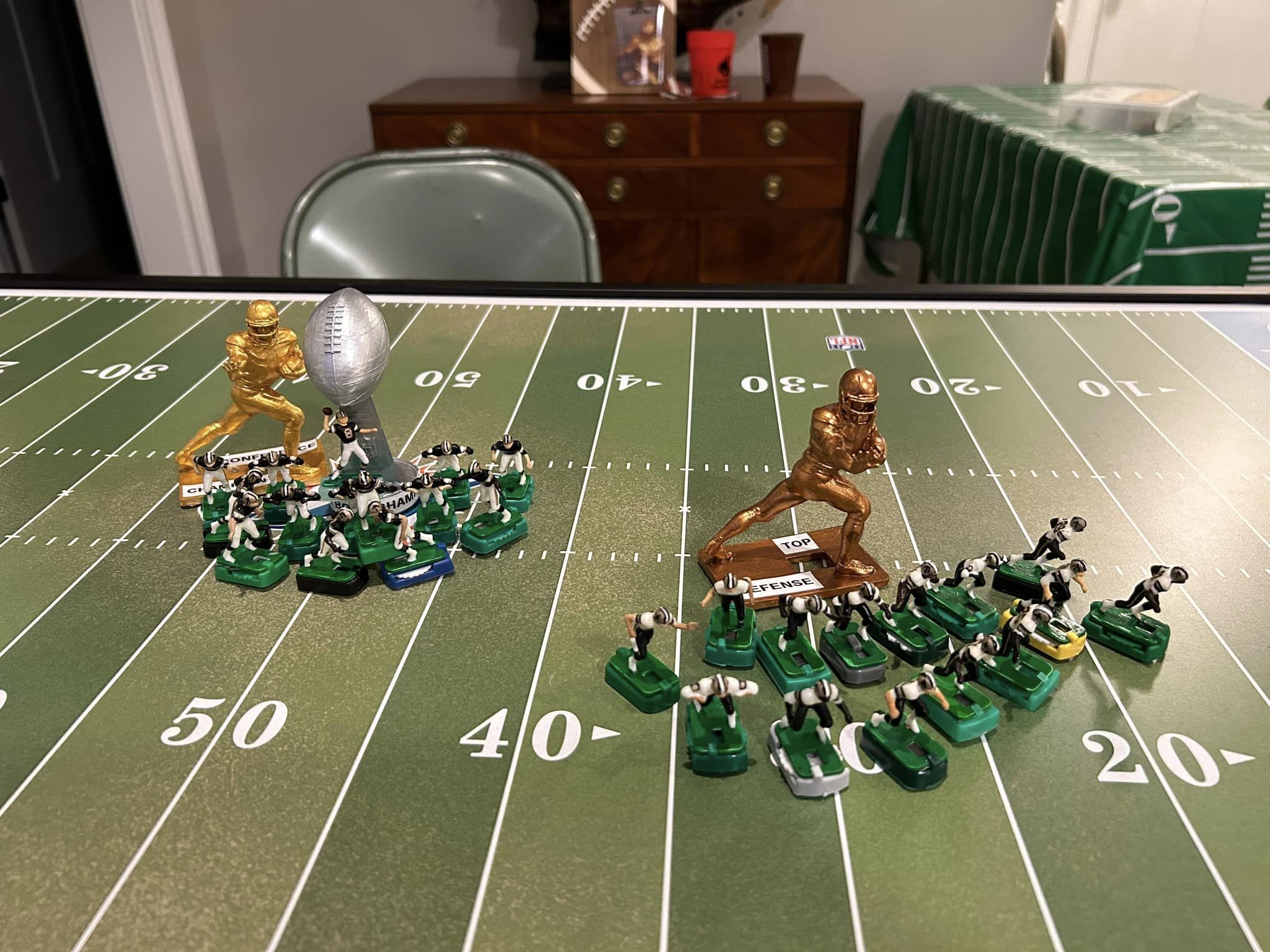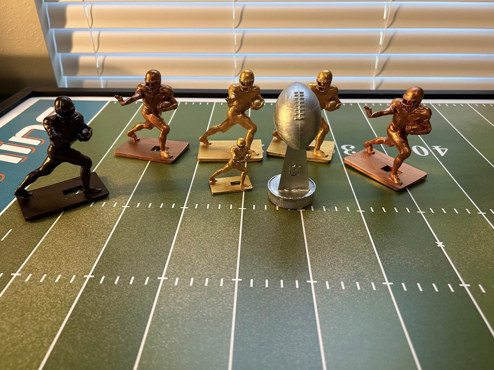 Shortly before 10:30 p.m., roughly 14 hours after the opening kickoff of the First Annual Throwback Electric Football Tournament, the veteran New Orleans Saints coach clung to a 7-0 lead over the charging Atlanta Falcons and their improving rookie coach. A small 3D printed Vince Lombardi Trophy glued to a silver painted Gatorade cap for stability hung in the balance.