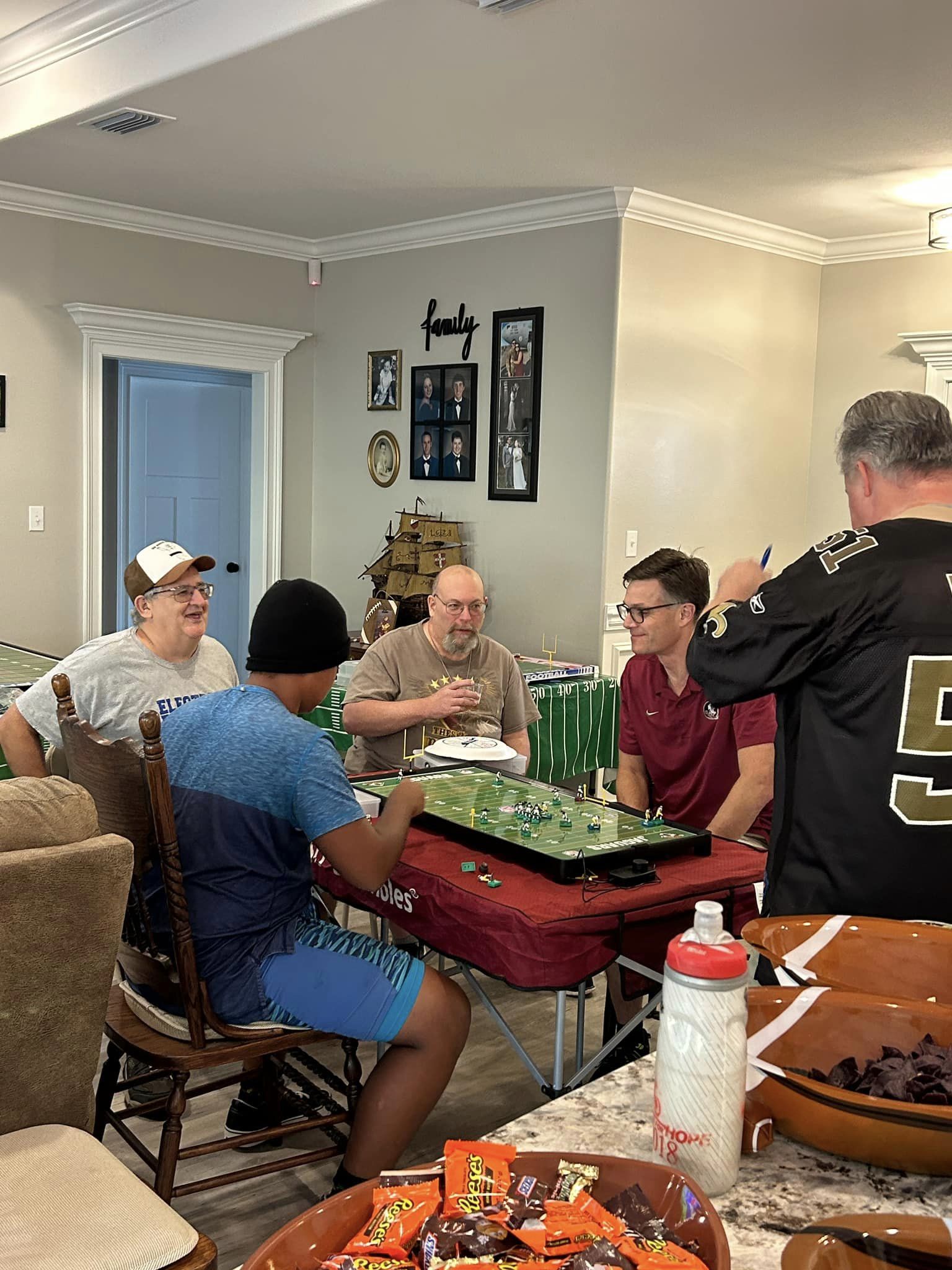 “As a follow-up, the Throwback Electric Football Tournament took place this past weekend in Monticello, Florida, just outside of Tallahassee. The Moores were excellent hosts and set up a one-of-a-kind double elimination tournament where you played full 32-play games. The tournament featured ten teams with coaches ranging in age from late teens to early sixties.