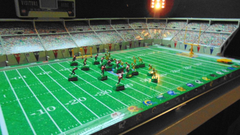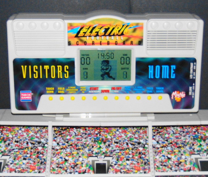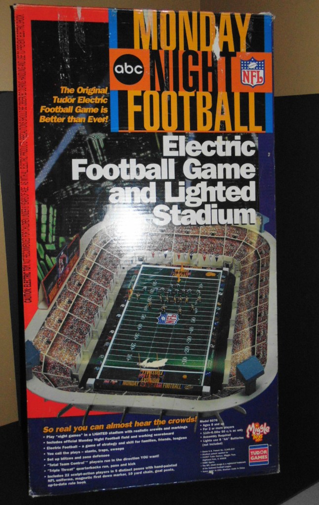 One of the games produced by Miggle Toys under their license with the NFL was an “ABC Monday Night Football Electric Football Game with Lighted Stadium”