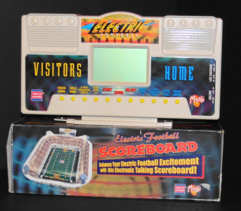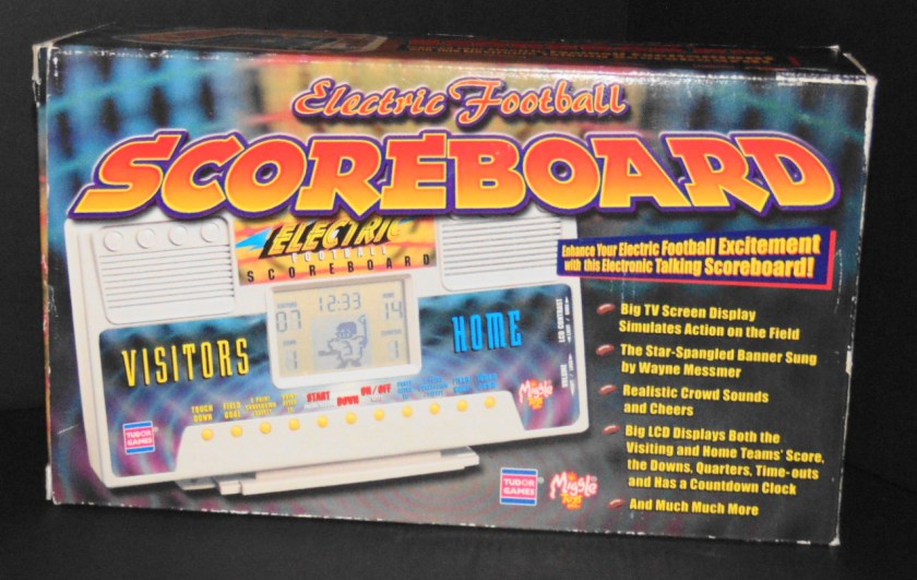 As an accessory to the lighted stadium, Miggle also produced an electronic Electric Football Scoreboard. It was designed to be used with the staium but also had stands that allowed it to be used with all model # 6070 series gameboards.