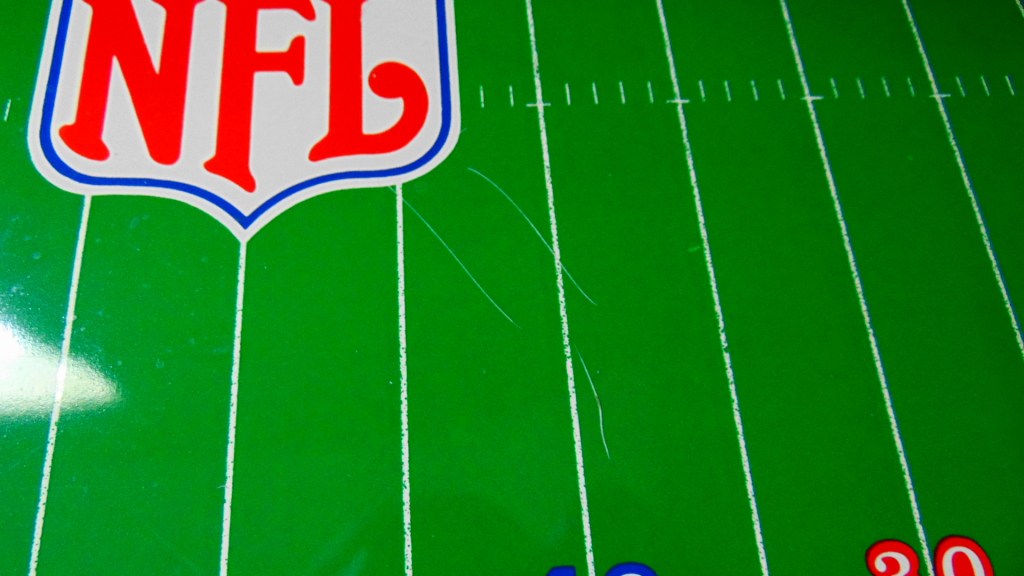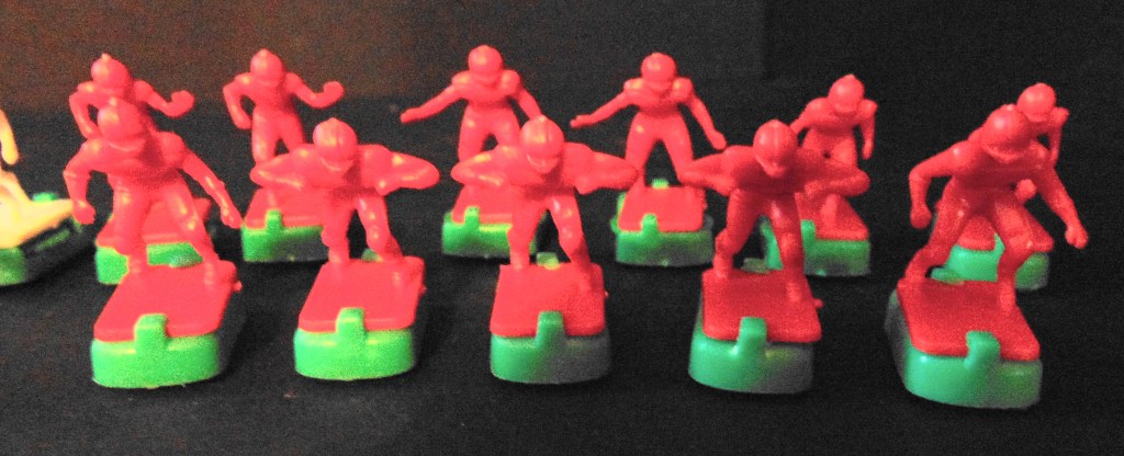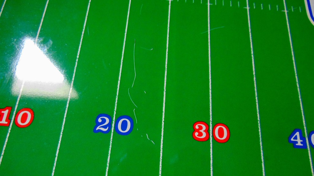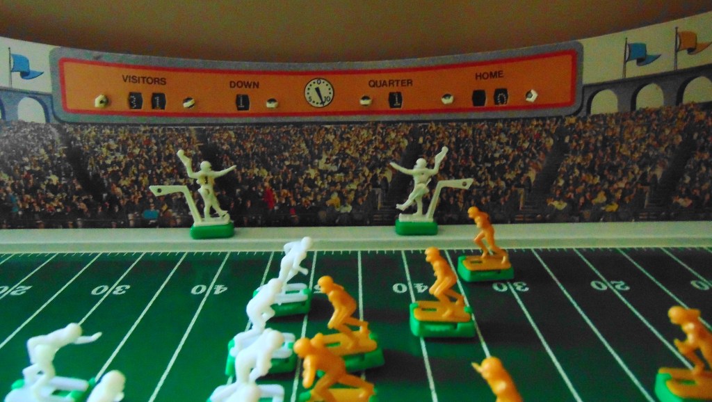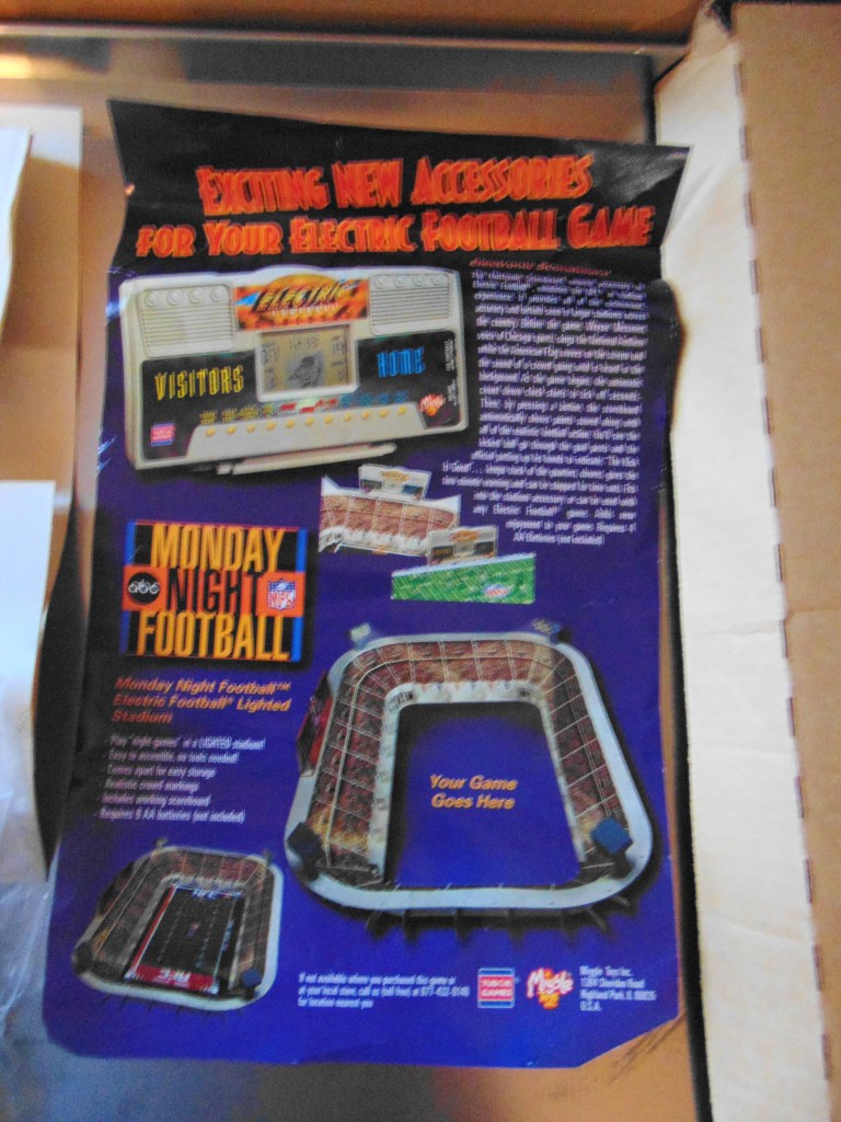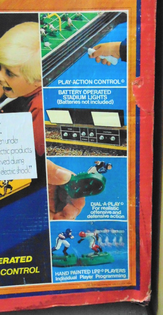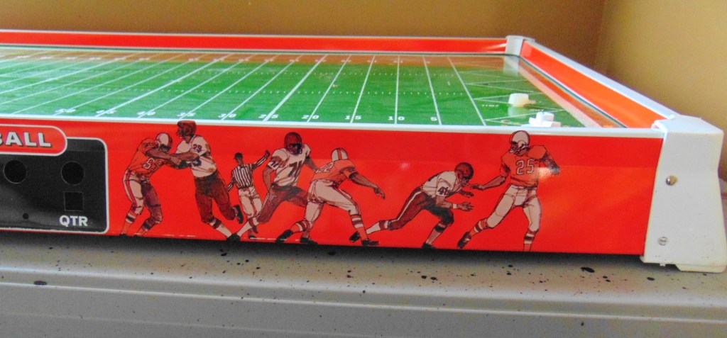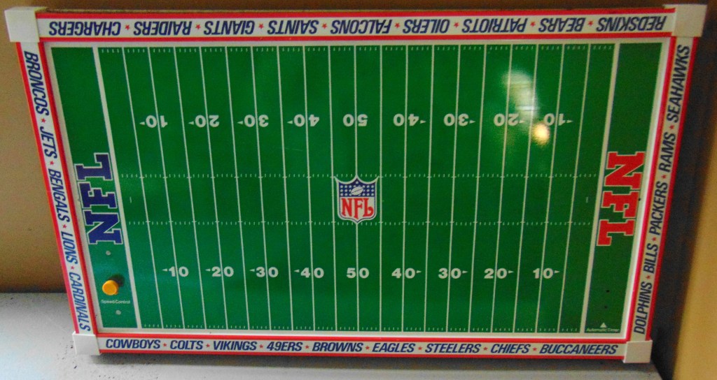 Tudor NFL American Conference Electric Football Model #610. “Browns vs. Bengals”. Game board – Good Condition (One broken leg corner) . Box -Extremely Poor Condition.
