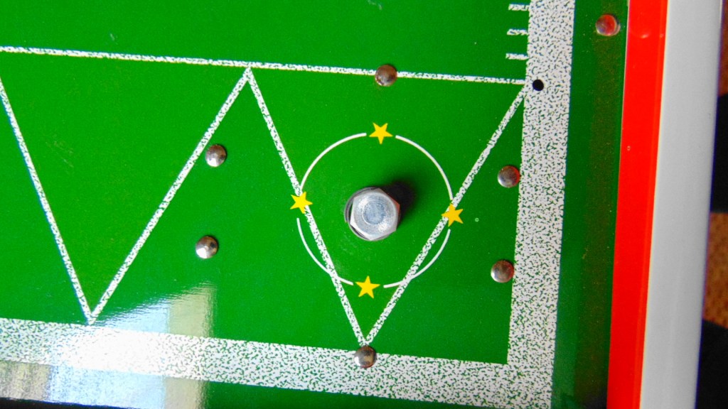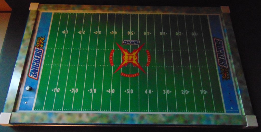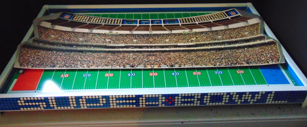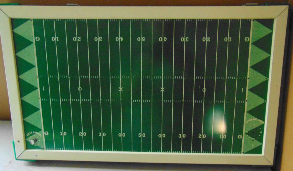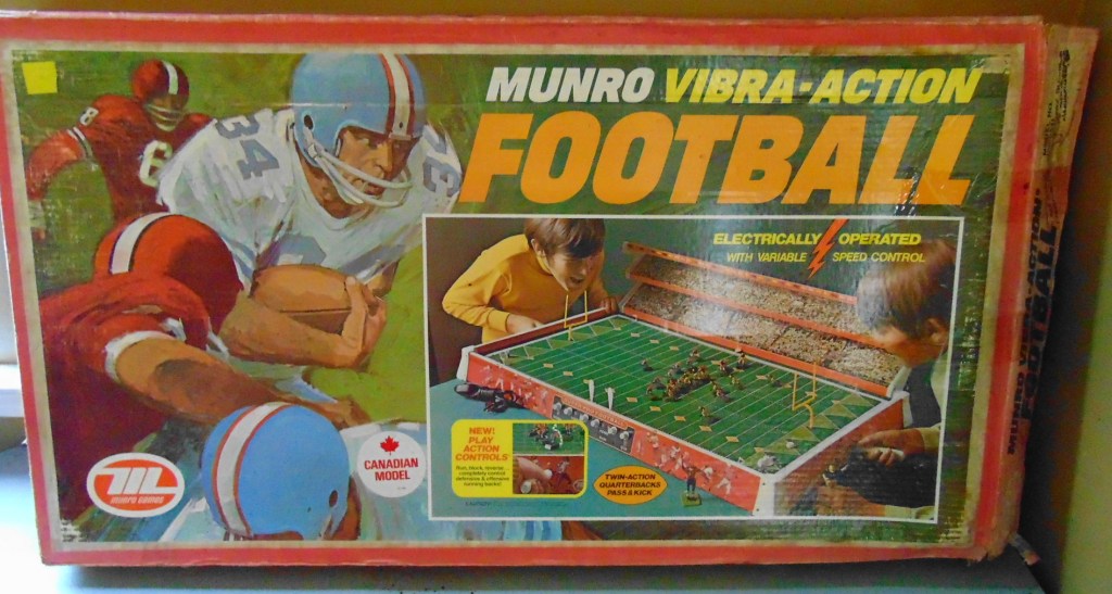 Munro Canadian Model 90541 “Vibra – Action Football”. Metal playing surface. Stadium grandstand included. “Play Action” control rods and a unique timer system.