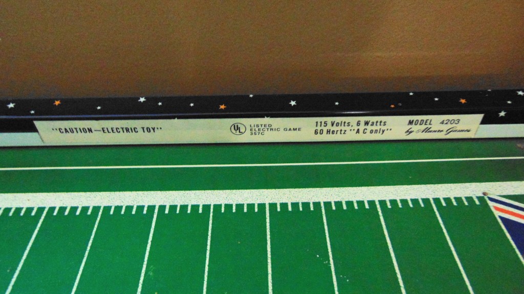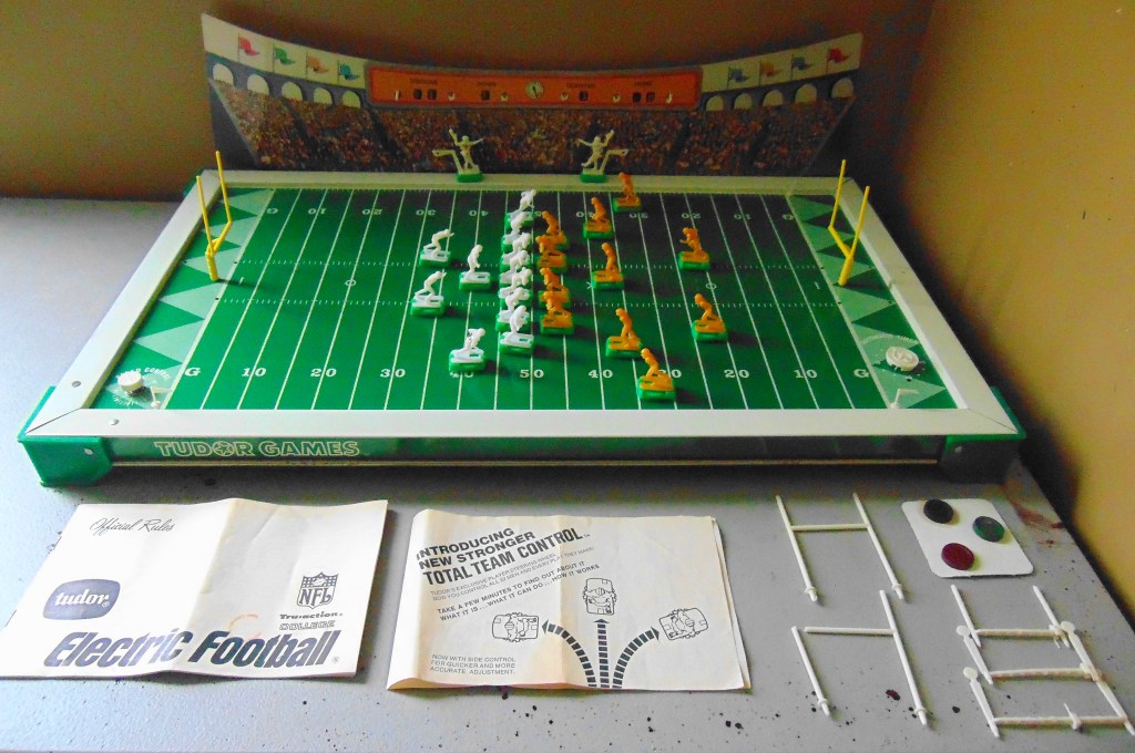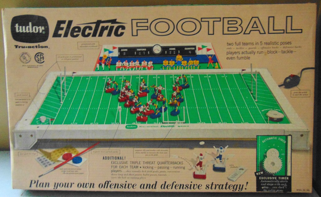 Tudor NFL Electric Football Model #520. Not sure of the date of manufacture. Does feature a newer corner design. Rams and Cowboys on cover.
