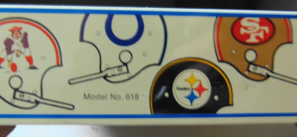 Probably a 1980 Super Bowl XVI game. The Rule Book is dated 1980. 660 or 664 (as indicated by ink stamp on underside of the game board. Box in poor shape (ripped , holes and creases), Cowboys and Broncos (Super Bowl XII) but the score of Super Bowl XVI between the Steelers and Rams is printed indicating a date of 1980. the game board is warped with several dents and scratches.