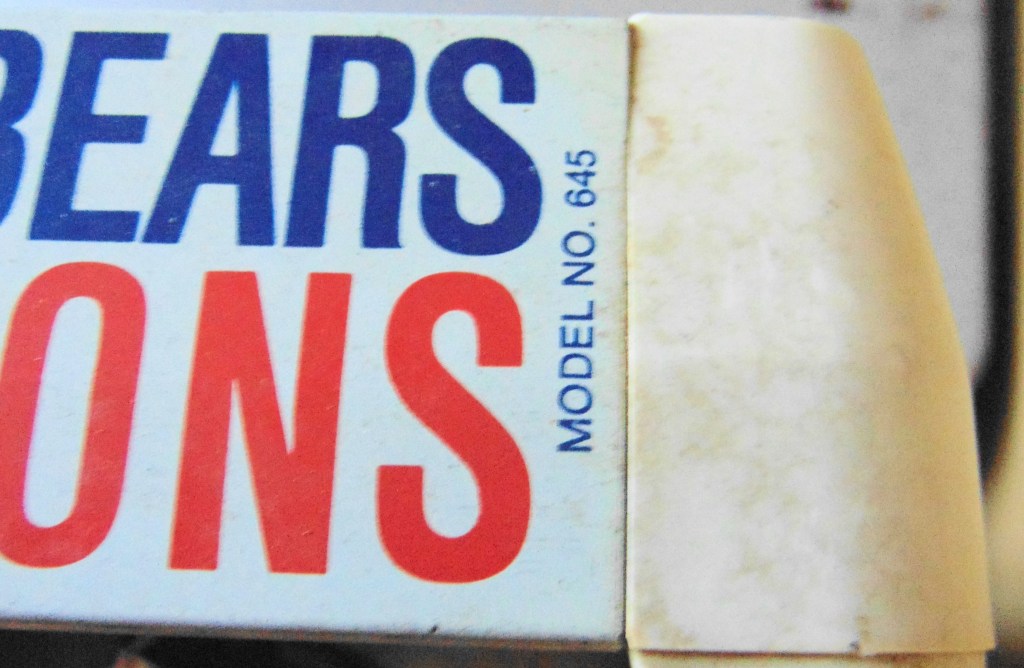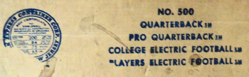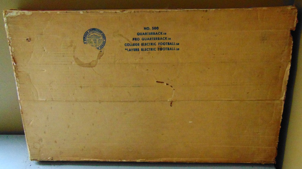 Possibly a 1972 Sears Model #630. The design of the game board and scoreboard match that of what is pictured in the 1972 Sears Wishbook. It is also stamped as a #630 on the back opf the box and has a Sears label on it. ( ref. “The Electric Football Wishbook” by Earl Shores / Roddy Garcia/ Michael Kronenberg)