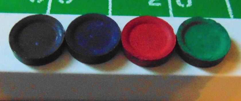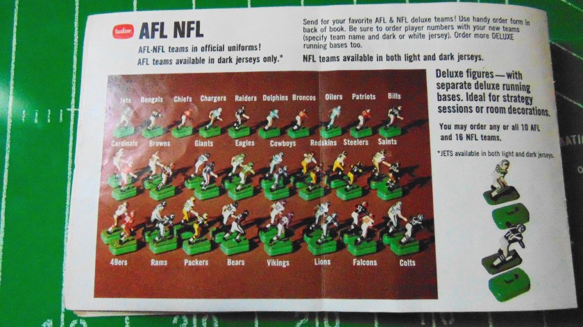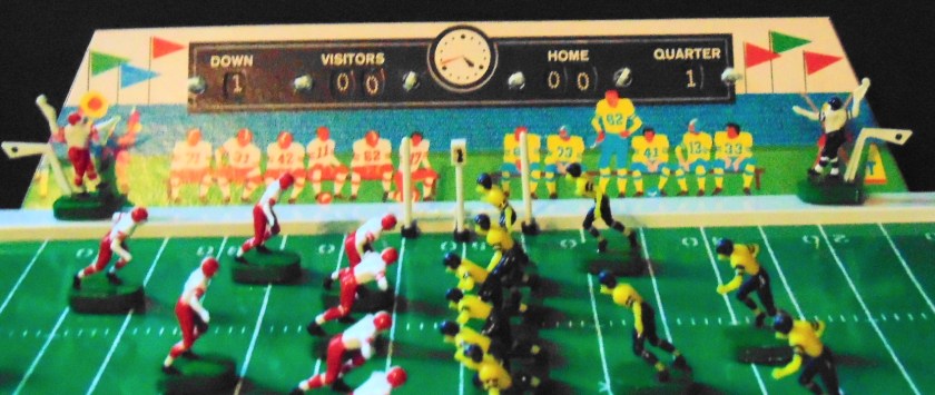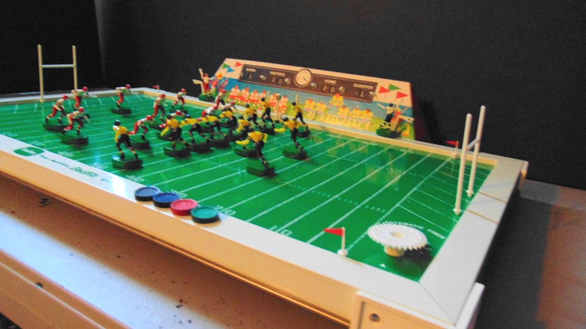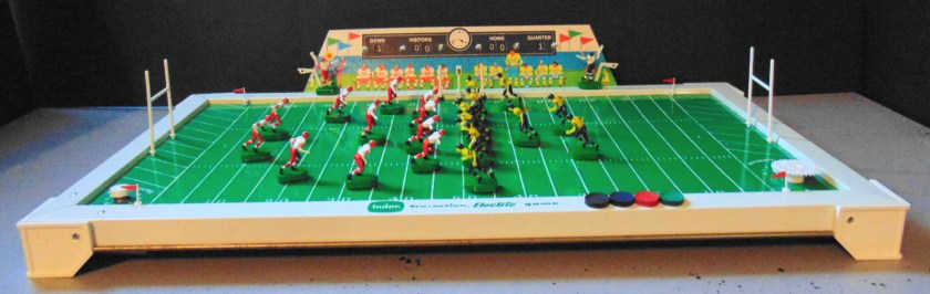 The original TTQBS have been painted to match the team uniforms. Tudor did include watercolor paint disc in games during this period and the ones pictured are an example of these. All in all, this is a very good example of a model 500 game set from the late 1960’s.