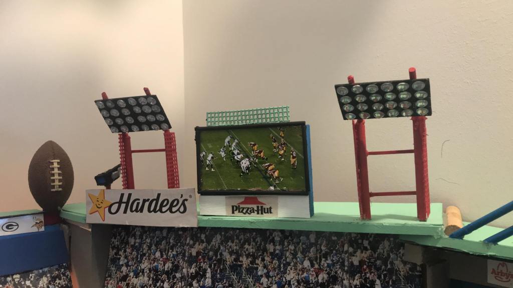 Ron plays his solitaire games in this elaborate stadium that enhances his game day experience to the max!!!
