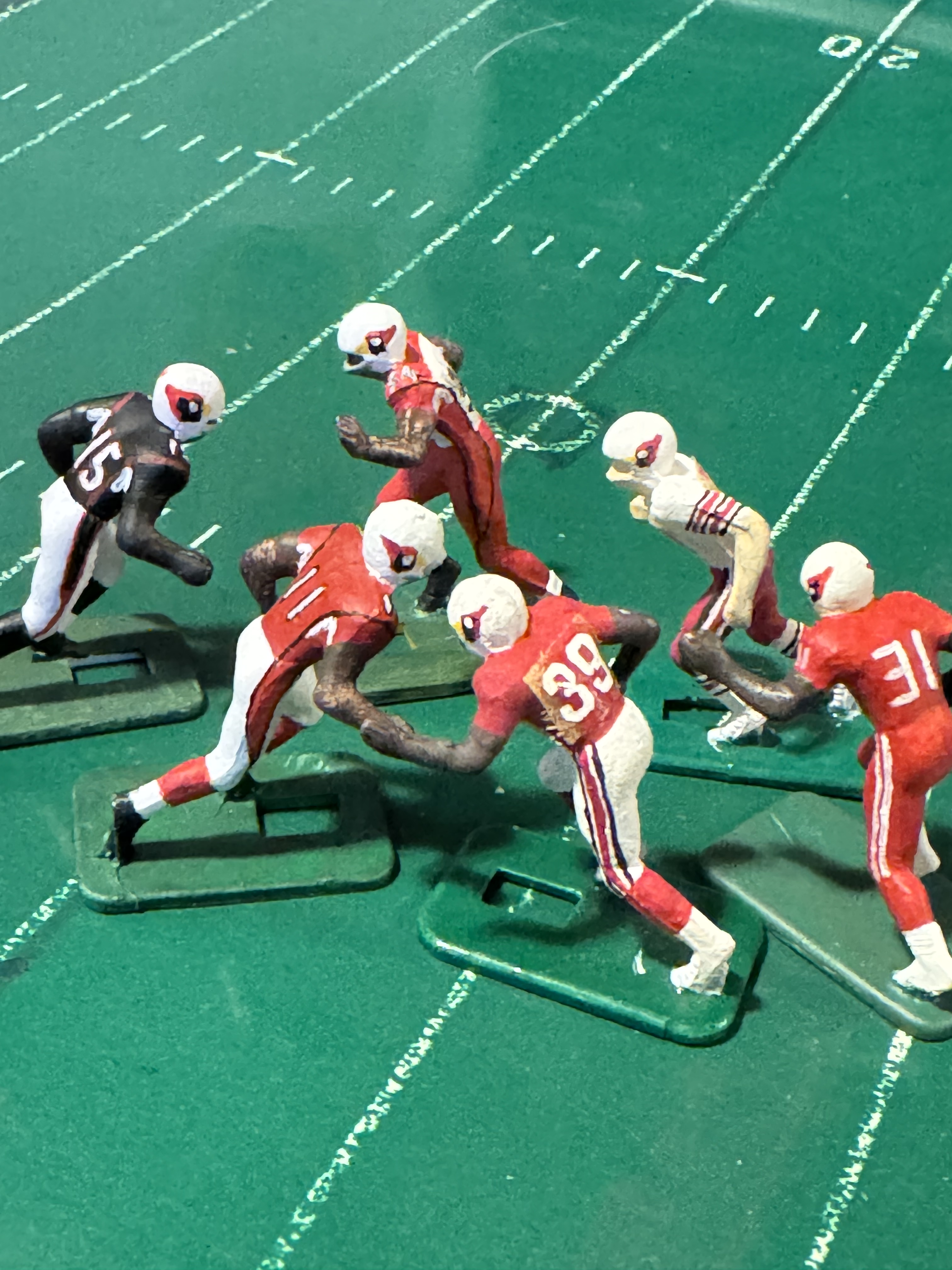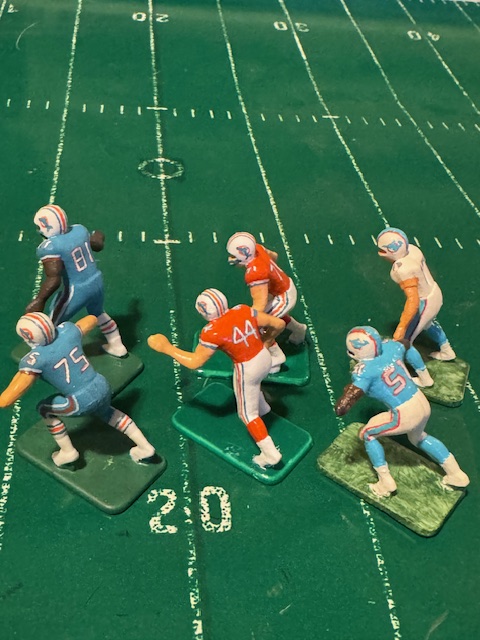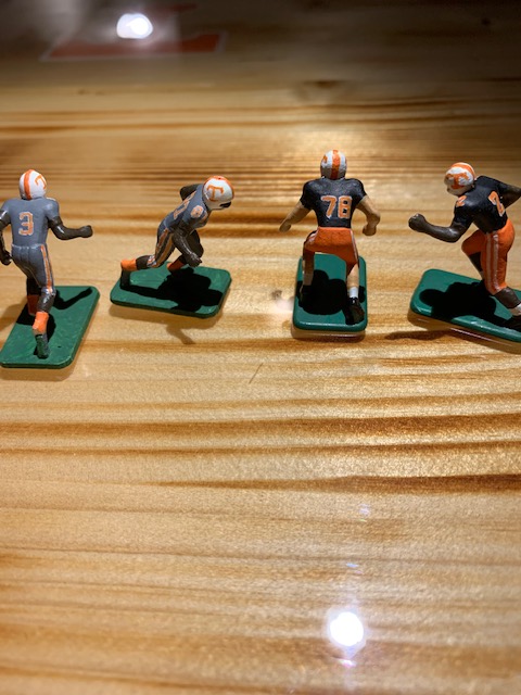 Anyway, my parents bought me the Browns-Giants (I believe it was a) Model 620 in 67 or 68. I was hooked. Over the years I bought several more teams (Chiefs, Packers, Eagles, Raiders) and tried my hand at painting. Now I wish I’d never sold my teams in 2017. Today I own two Model 620s and many teams. I particularly enjoy buying figures: Undefeated Figures, Next Level Authentics, and 808 Sculpts then painting them as a college team. I’ve even painted a few NLA baseball figures and made some of my own decals. I will always be partial to Bob Gibson and the 60s Cardinals. We couldn’t buy college teams in the 60s, so I really enjoy painting them, especially Big 12, Pac 12, and ACC teams. In 2017 I retired, and I’ve slowly got back into the EF hobby. I paint from about 4:30 to 5:30 a.m. while I listen to Bible lessons. It is very relaxing. I work part-time for Congress and have gotten to know some men of integrity through the EF hobby. It was wonderful that Bryan Nutt (Tudor) held the Tudor Con recently. Perhaps I can attend in the future and meet my brothers face to face!