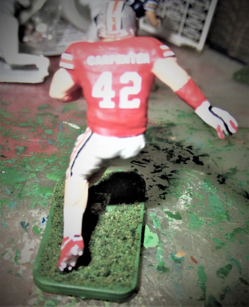 The first thing I noticed about the figures that Mike Maxwell was painting was that he was using figures from the vintage era of electric football.
