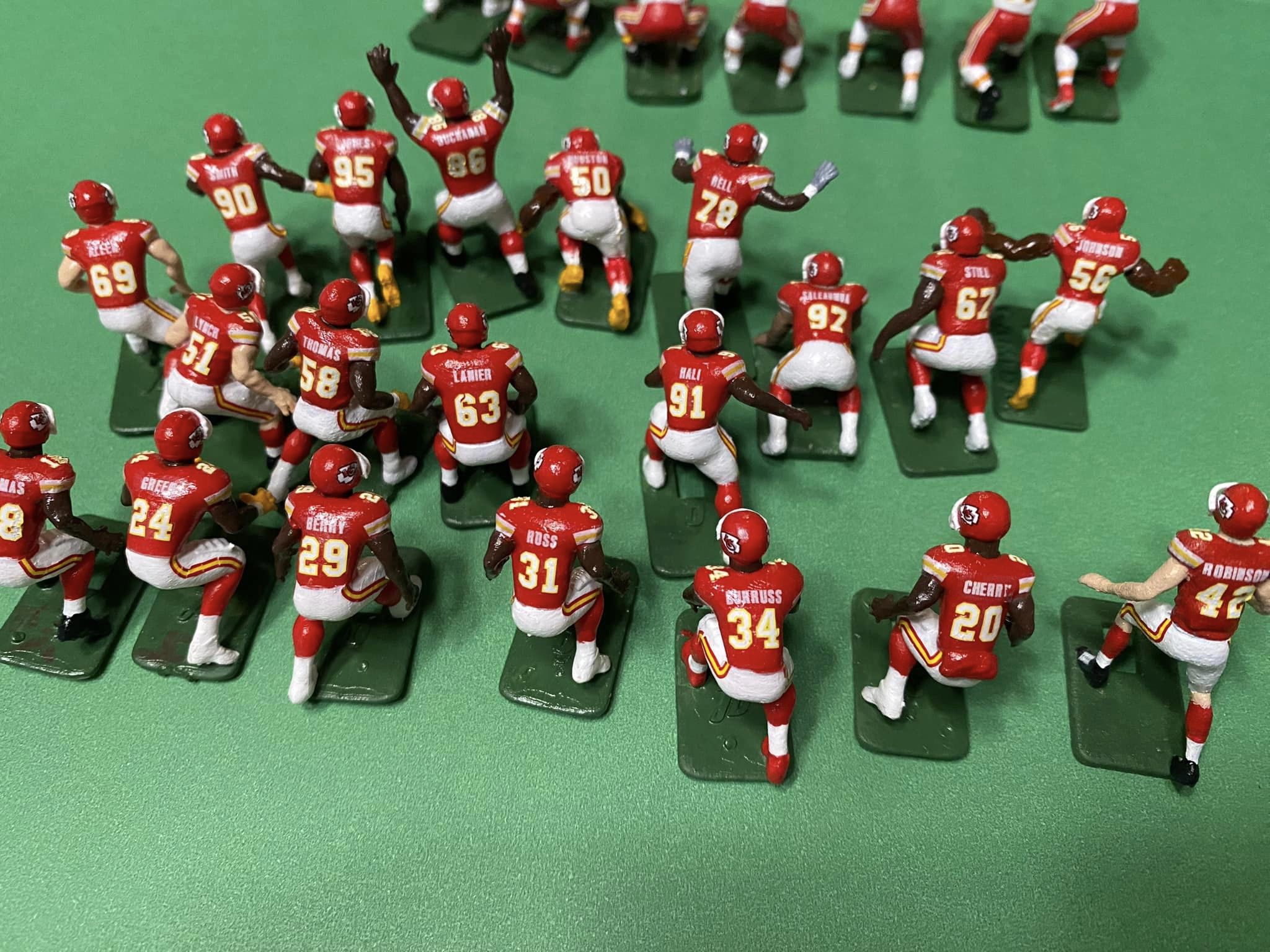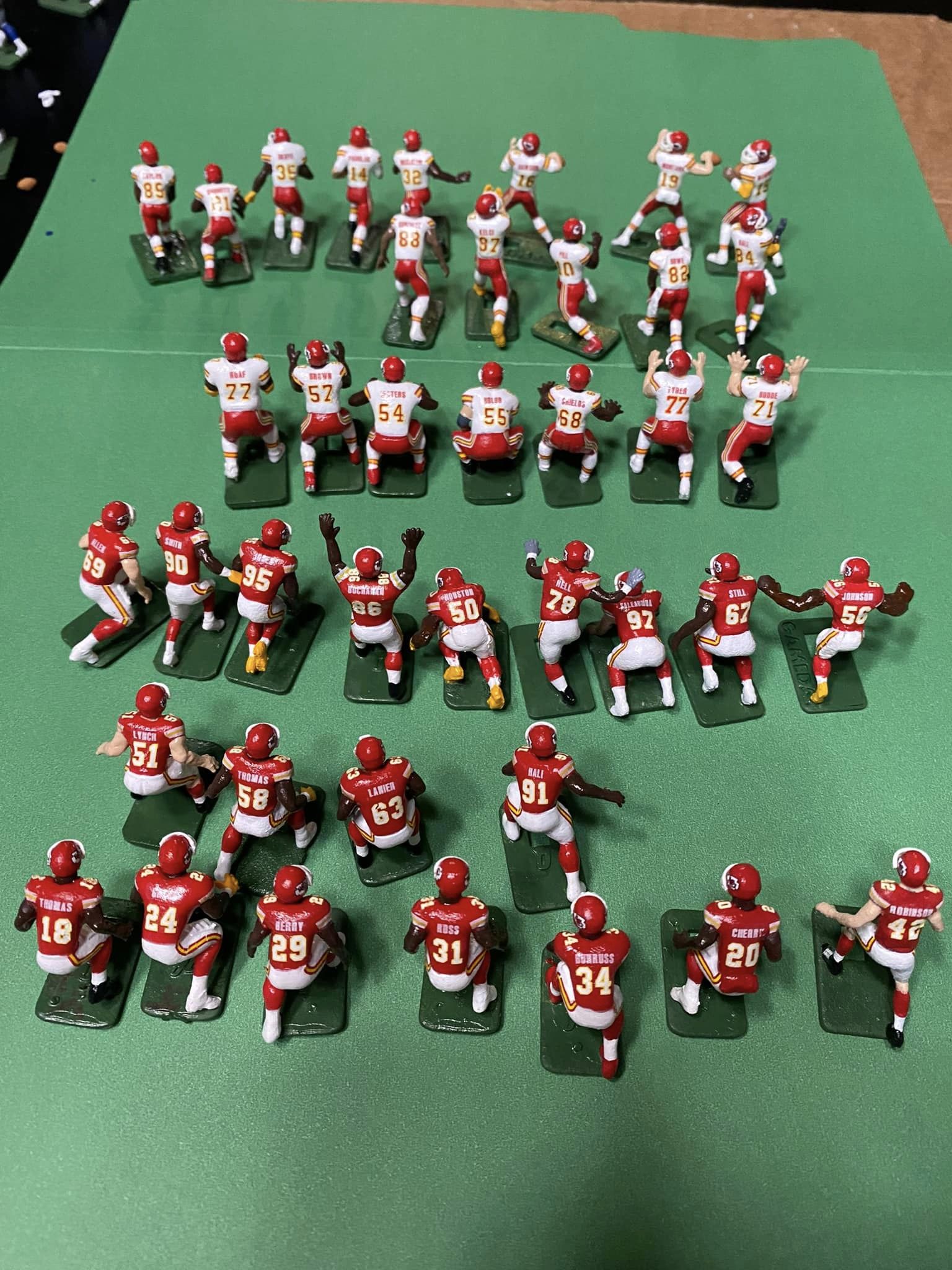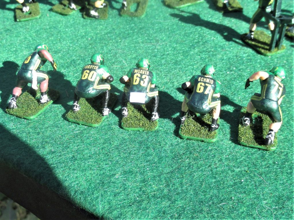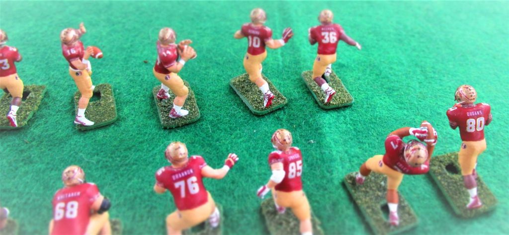 Anyway, my parents bought me the Browns-Giants (I believe it was a) Model 620 in 67 or 68. I was hooked. Over the years I bought several more teams (Chiefs, Packers, Eagles, Raiders) and tried my hand at painting. Now I wish I’d never sold my teams in 2017. Today I own two Model 620s and many teams. I particularly enjoy buying figures: Undefeated Figures, Next Level Authentics, and 808 Sculpts then painting them as a college team. I’ve even painted a few NLA baseball figures and made some of my own decals. I will always be partial to Bob Gibson and the 60s Cardinals. We couldn’t buy college teams in the 60s, so I really enjoy painting them, especially Big 12, Pac 12, and ACC teams. In 2017 I retired, and I’ve slowly got back into the EF hobby. I paint from about 4:30 to 5:30 a.m. while I listen to Bible lessons. It is very relaxing. I work part-time for Congress and have gotten to know some men of integrity through the EF hobby. It was wonderful that Bryan Nutt (Tudor) held the Tudor Con recently. Perhaps I can attend in the future and meet my brothers face to face!