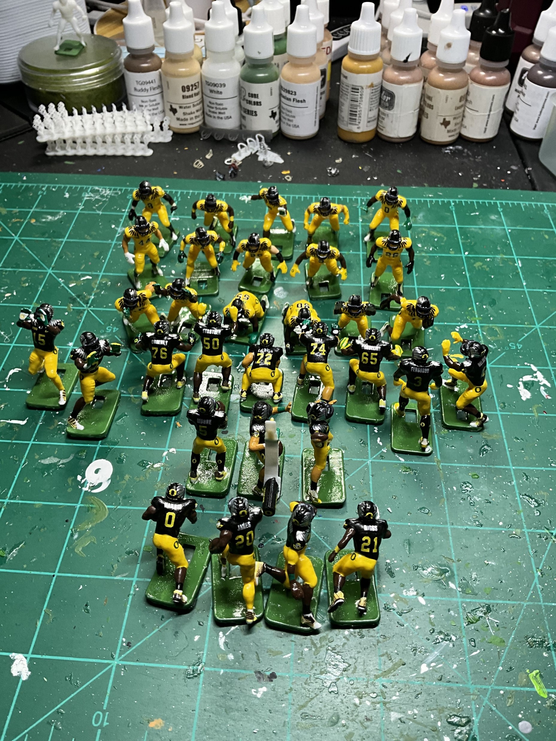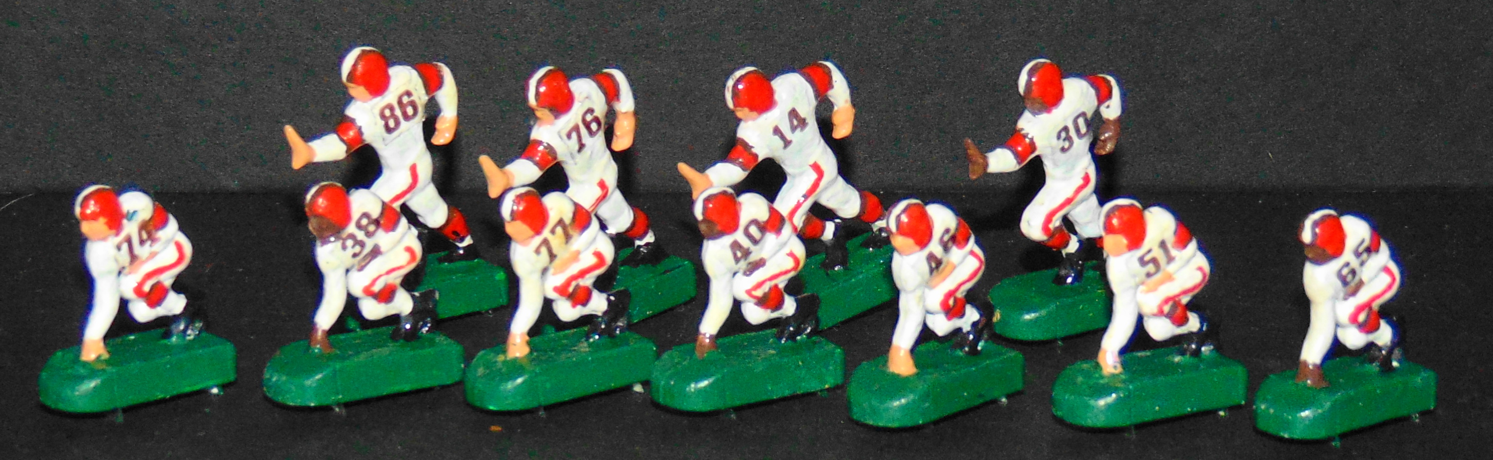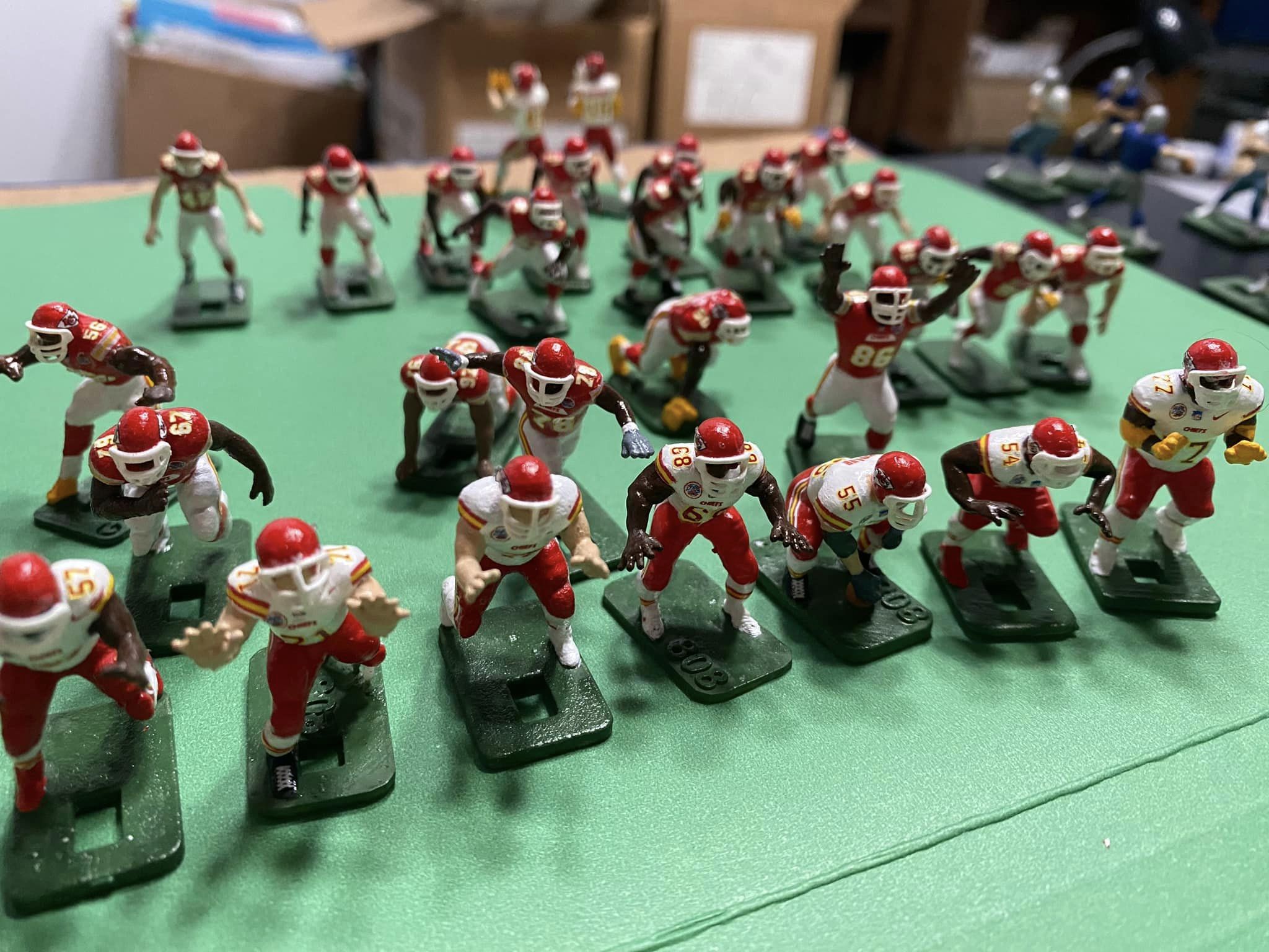 Anyway, my parents bought me the Browns-Giants (I believe it was a) Model 620 in 67 or 68. I was hooked. Over the years I bought several more teams (Chiefs, Packers, Eagles, Raiders) and tried my hand at painting. Now I wish I’d never sold my teams in 2017. Today I own two Model 620s and many teams. I particularly enjoy buying figures: Undefeated Figures, Next Level Authentics, and 808 Sculpts then painting them as a college team. I’ve even painted a few NLA baseball figures and made some of my own decals. I will always be partial to Bob Gibson and the 60s Cardinals. We couldn’t buy college teams in the 60s, so I really enjoy painting them, especially Big 12, Pac 12, and ACC teams. In 2017 I retired, and I’ve slowly got back into the EF hobby. I paint from about 4:30 to 5:30 a.m. while I listen to Bible lessons. It is very relaxing. I work part-time for Congress and have gotten to know some men of integrity through the EF hobby. It was wonderful that Bryan Nutt (Tudor) held the Tudor Con recently. Perhaps I can attend in the future and meet my brothers face to face!