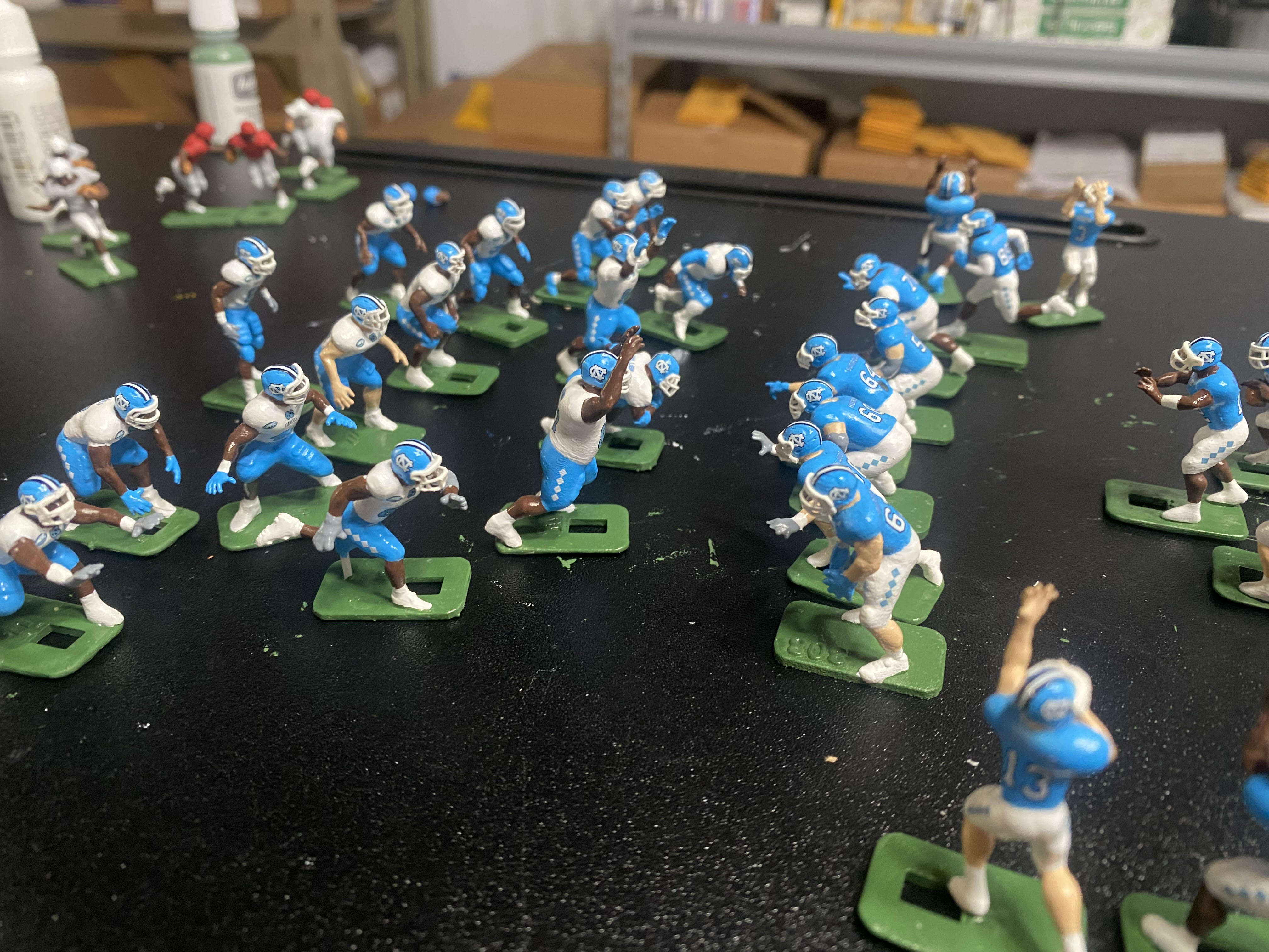 But perhaps the most popular form of “electric football art” is in the creation of customized figures that are often used in actually playing the game and in creating displays of popular college and professional teams and players.
