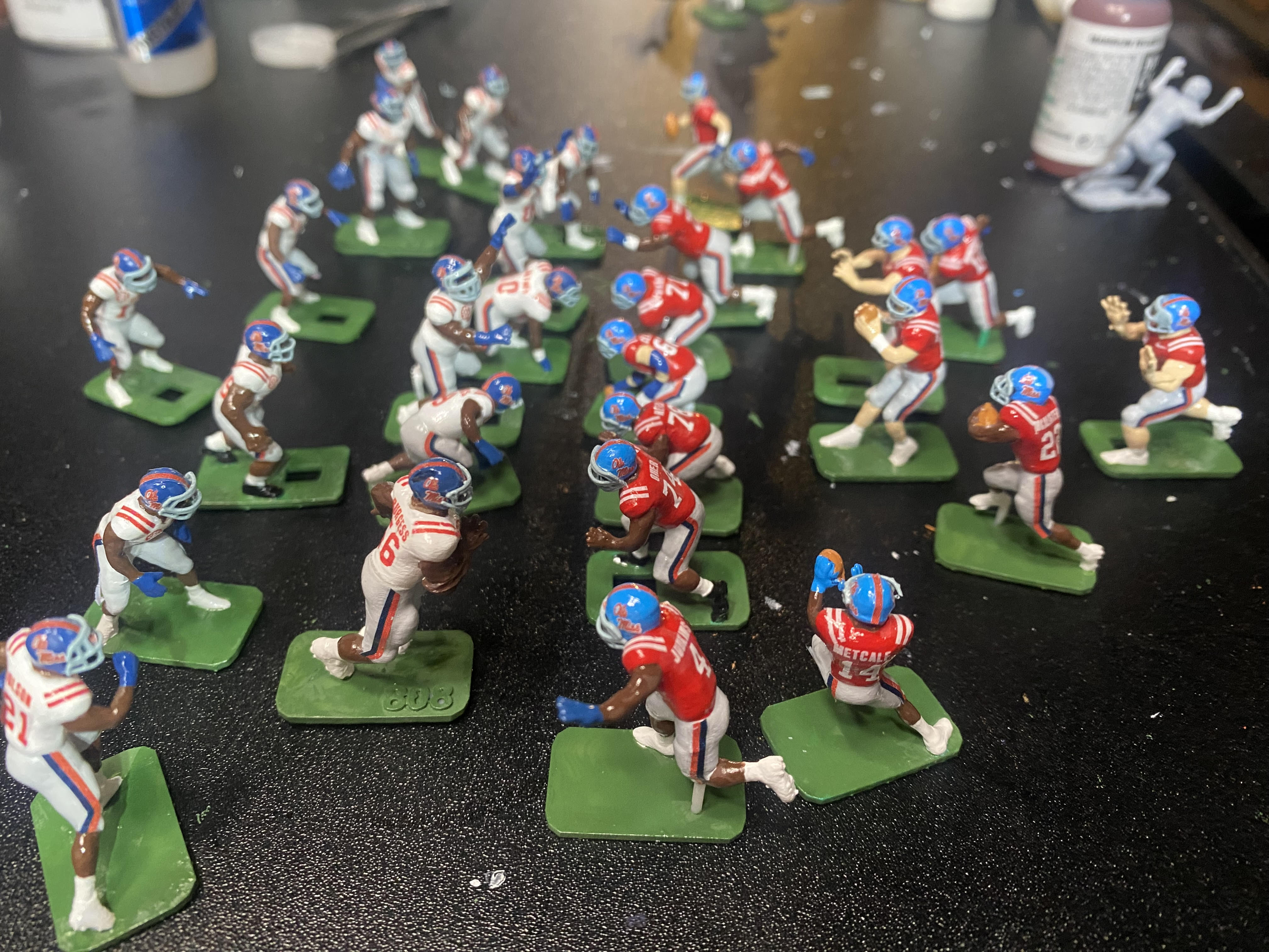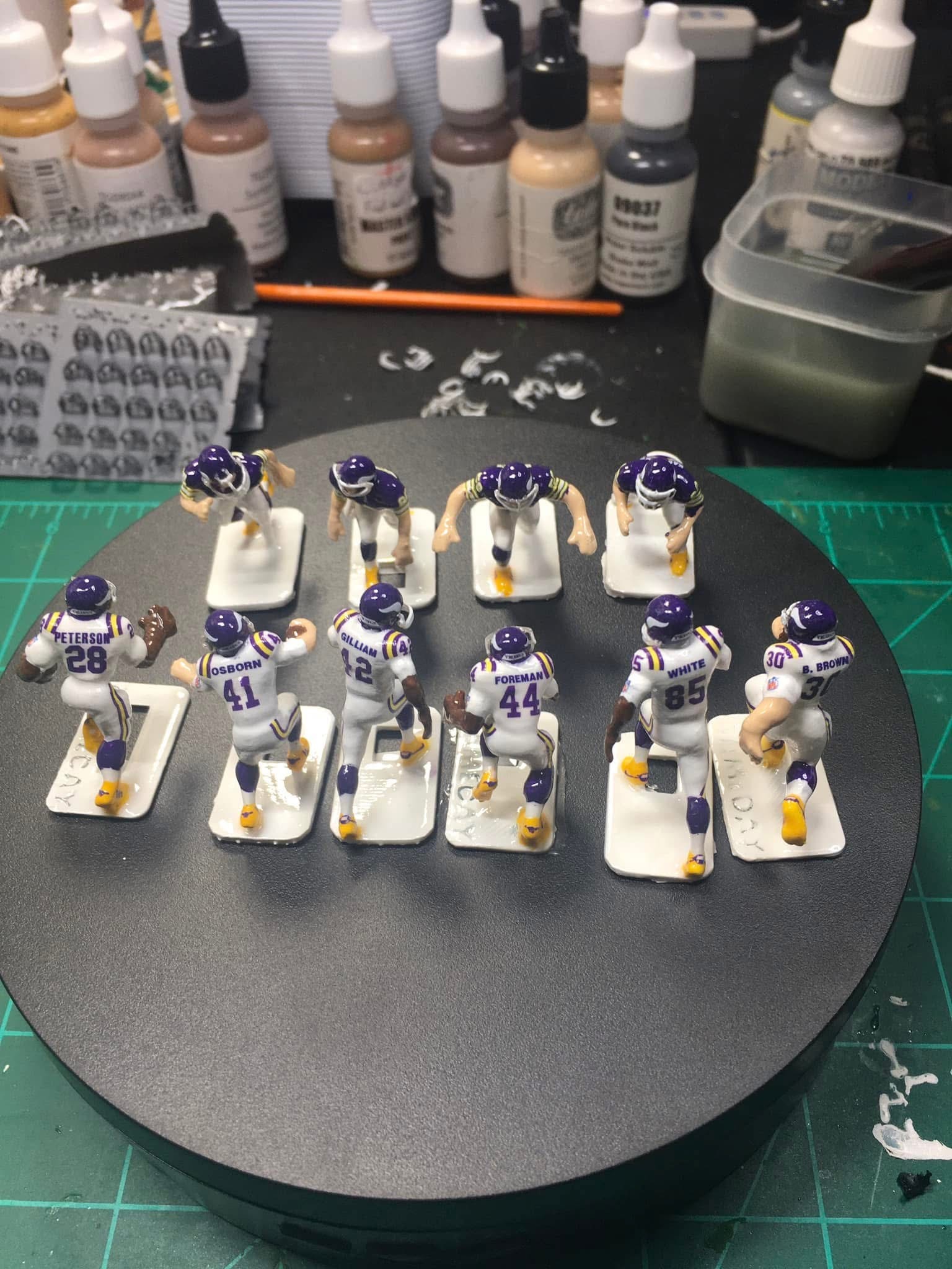 “My dad and I rediscovered electric football after one Christmas morning. We started getting involved in the hobby. Going to tournaments and Miggle conventions. Beenutt (my dad Bryan Nutt) started selling decals and painting teams along with tweaking bases. We are a partnership. I detail the figures and my dad makes the decals. I absolutely love painting teams. “
