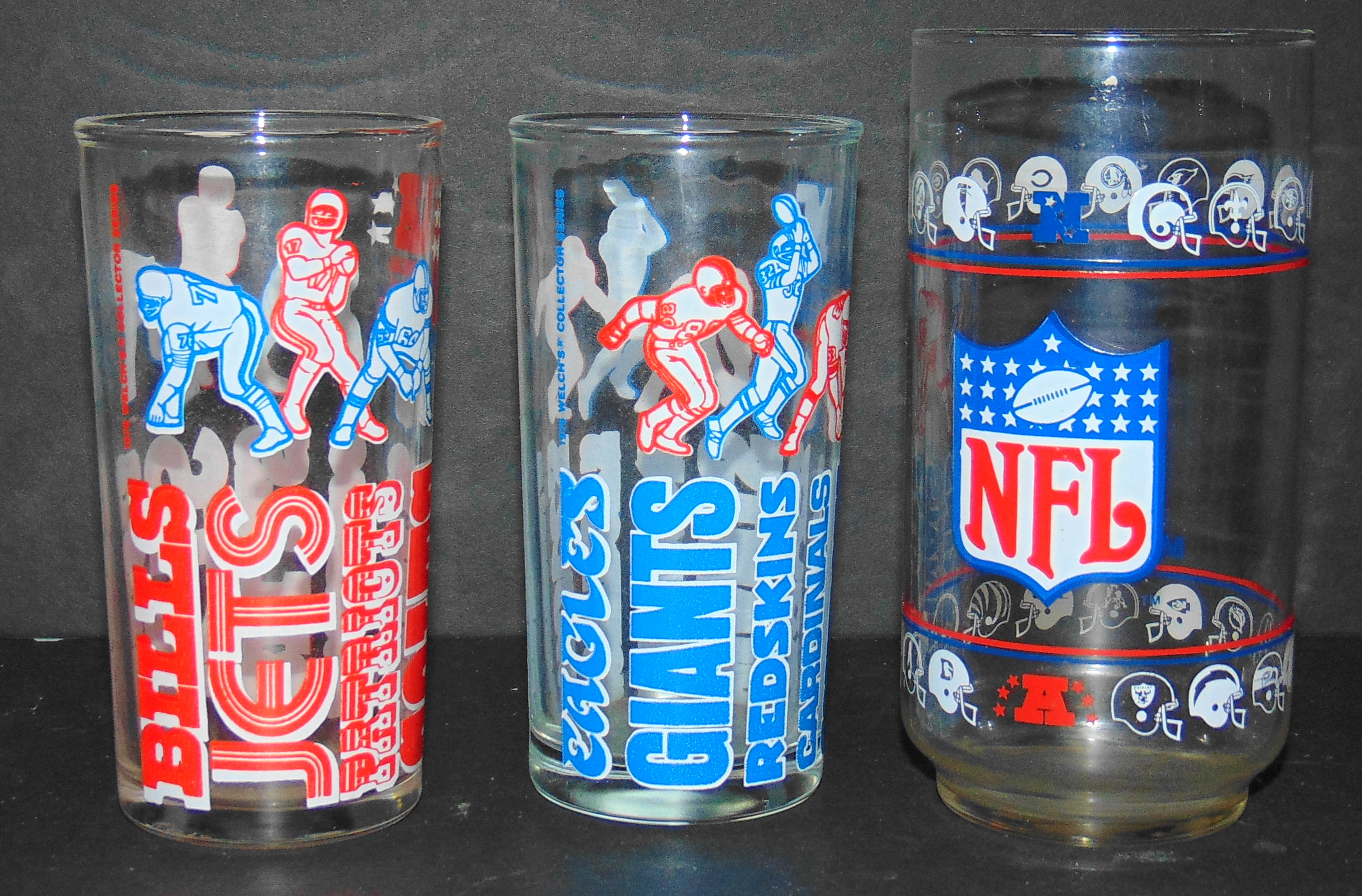 NFL Logo and Team Helmet / Name collectible glasses. set of 3.