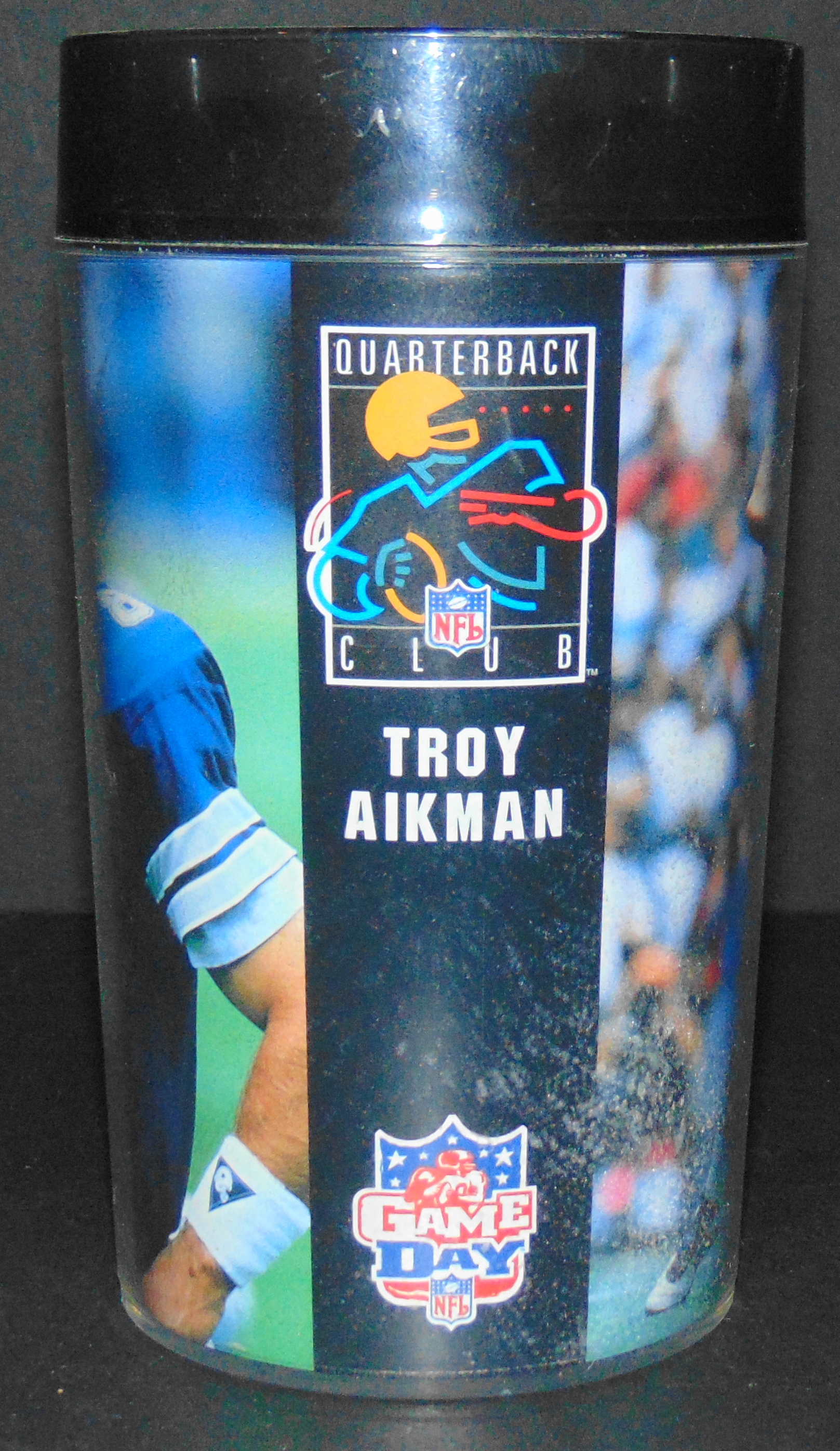 NFL and Quarterback Club Dallas Cowboys Hall of Famer Troy Aikman Collectible Travel Mug, AS IS.