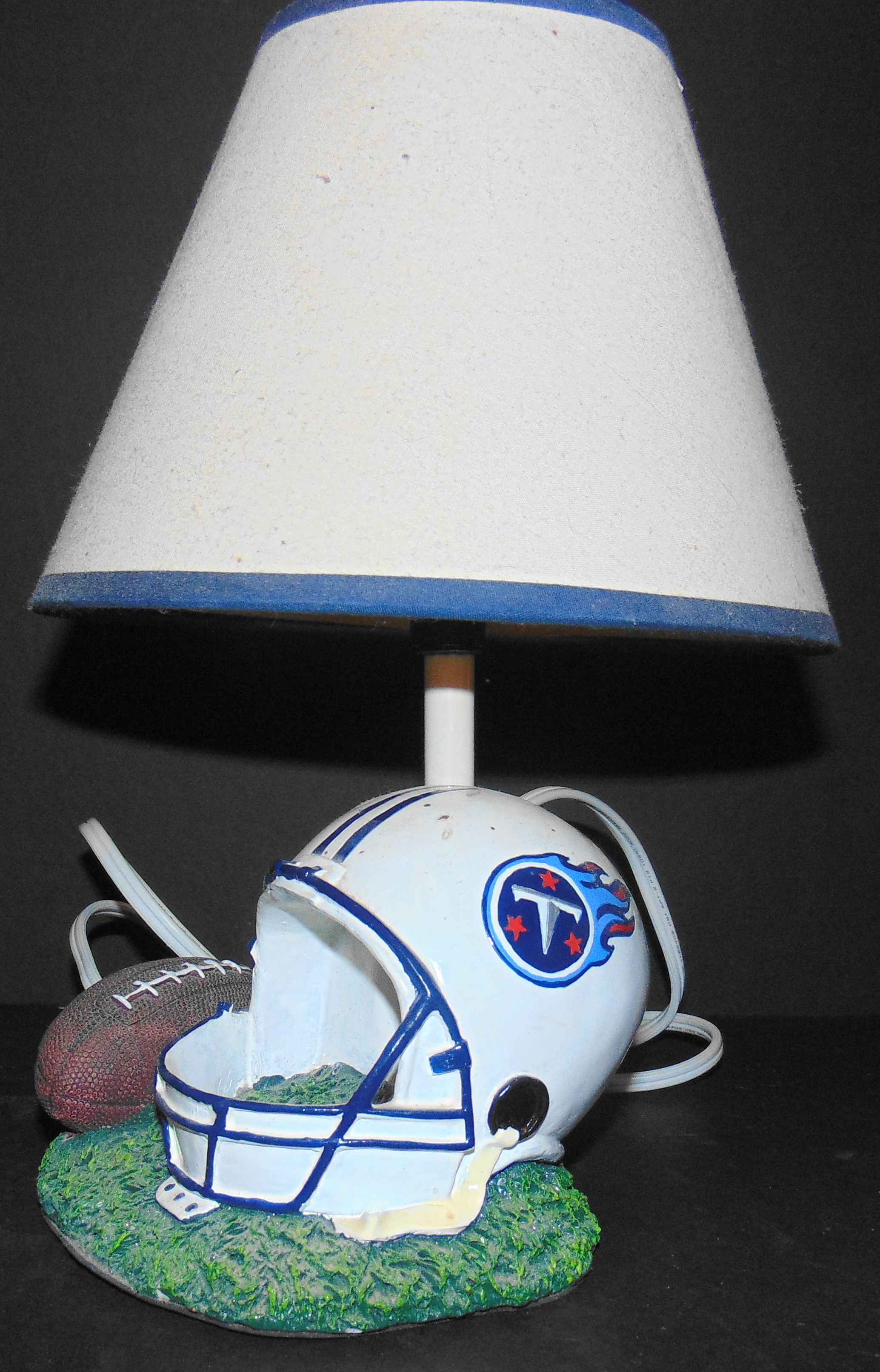 An NFL Licensed “Tennessee Titans” small lamp. Approximately 12″ tall. Ceramic “Made in China” / June 2000. Works!! Sold AS IS. May be some slight damage.