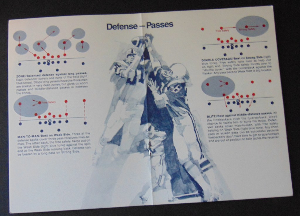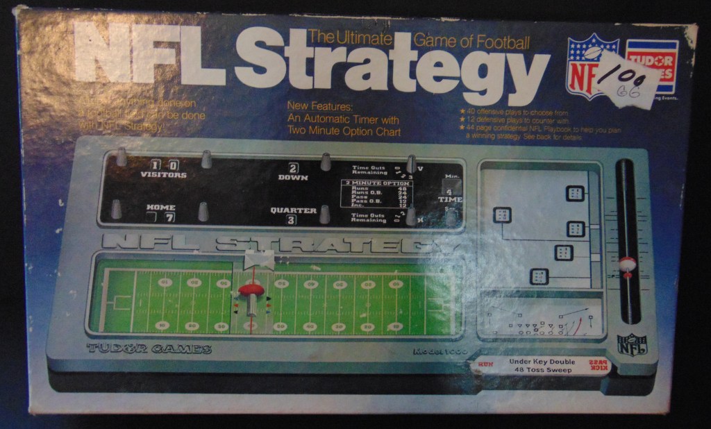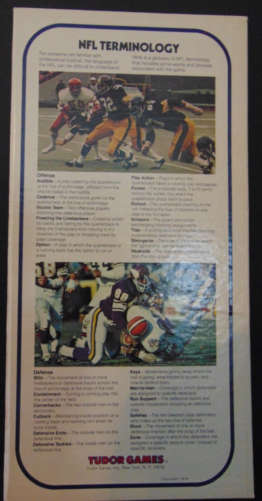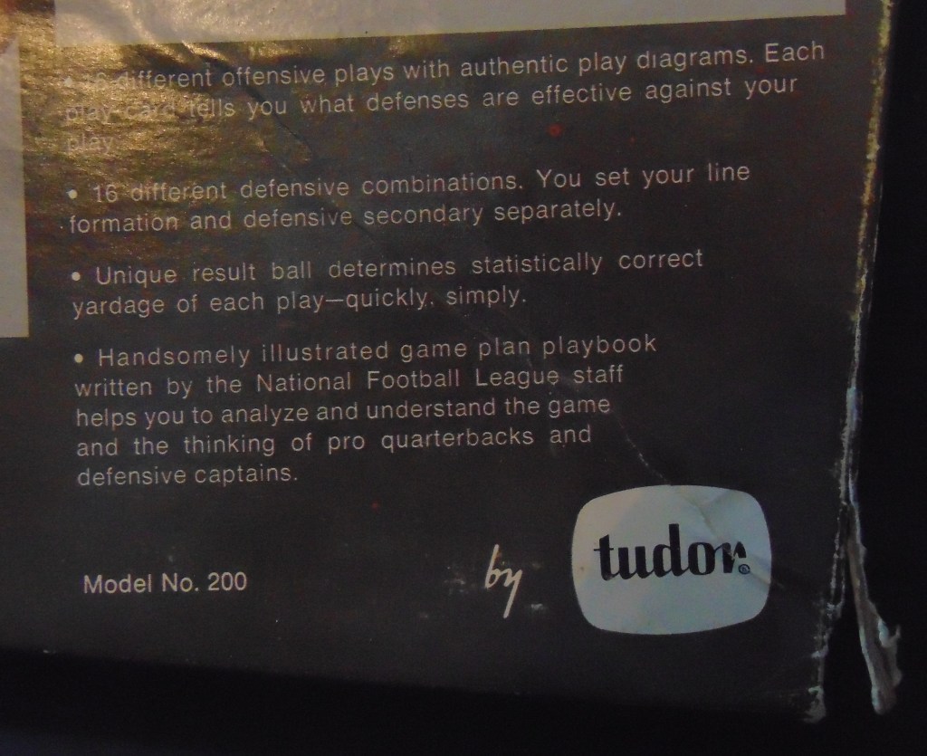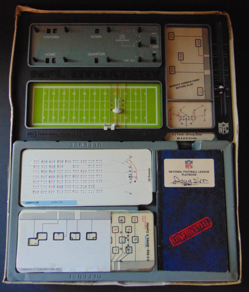 Included with the game is a “Confidential” Playbook. This is a great learning tool for the student of football with its diagrams of offensive and defensive formations, how and where each may be used to its most advantageous effectiveness. It also has a great section on the study of strategy and tendencies. Tudor produced this game for several years. Pictured below is another edition of this game from 1980.